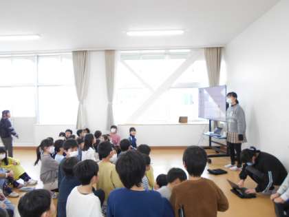2月26日(月) 3年生 休み時間 公開日 2024/02/26 更新日 2024/02/26 2023年度 3年生 休み時間には、6年生が企画したクイズ大会に参加しました。 なぞなぞやクイズを一緒に楽しみました。