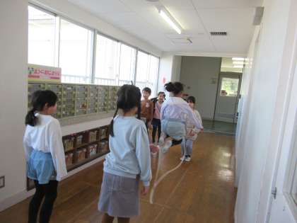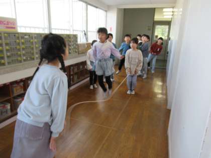 休み時間には、廊下で8の字練習が始まりました。なわとび大会はおわりましたが、子供たちの練習は、続きます。縄に入るタイミングがつかめてきたようです。