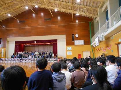 3年生からは歌のプレゼントをしました。感謝の気持ちを込めて歌いました。