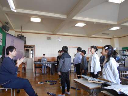 3月14日(木)4年生 合奏の発表 公開日 2024/03/14 更新日 2024/03/14 2023年度 4年生 1組では、3学期に練習してきた「茶色の小びん」の合奏を担任の先生に聞いていただきました。みんなで息を合わせて楽器を鳴らし、すてきな演奏を届けることができました。