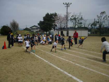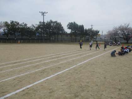 走る姿勢をチェックするストレッチをした後、50メートル走の記録を測りました。自分の記録を縮めることができるのか。これからも楽しみです。