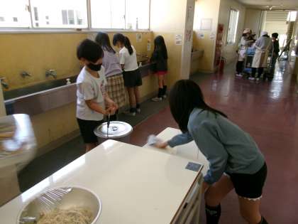 4月12日(金) 4年生 給食準備の様子