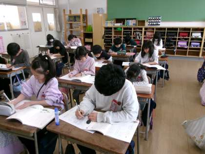 4月12日(金) 4年生 国語 公開日 2024/04/13 更新日 2024/04/13 4年生 国語の授業では、「春のうた」の試写を行いました。姿勢よく、正しい鉛筆の持ち方で書くことに気を付けながら、集中して書いています。