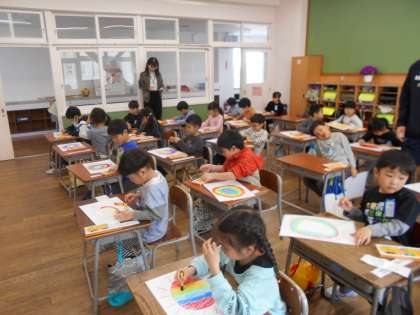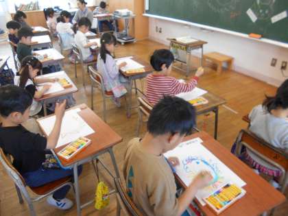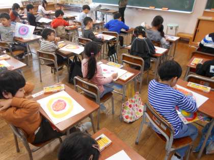 カラフルにしたり形を考えたりと思い思いに描いていました。