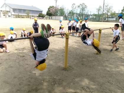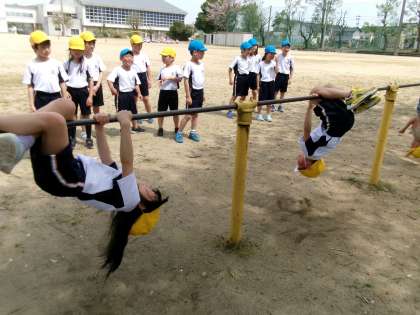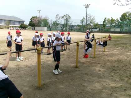 体育科では、鉄棒運動に取り組みました。ぶらさがり技や支え技にチャレンジしました。