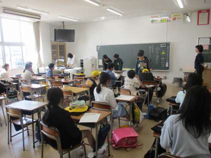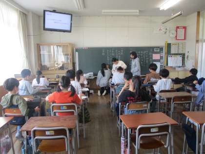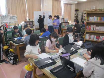運営、なかよし、ボランティア、栽培、保健、図書、給食、整備、運動の9委員会で、今年度の児童会活動がスタートしました。委員会メンバーは、6年生の各委員会役員からアピールを聞いた後、5年生がどの委員会かを選び決定しました。