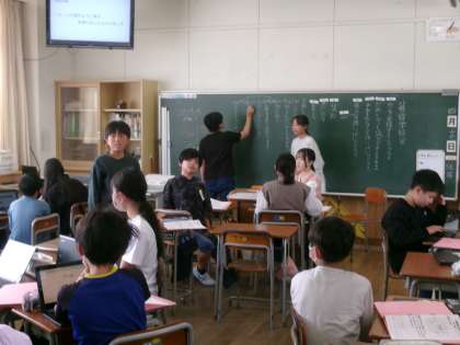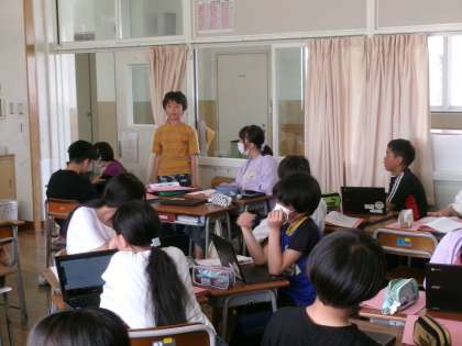 学級目標について話し合っています。どんな学級を目指したいか、それぞれの意見を発表し合いました。