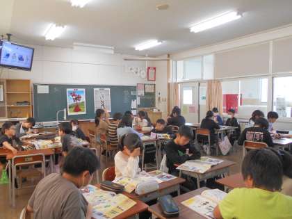 4月18日(木) 5年生 図画工作科(鑑賞) 公開日 2024/04/19 更新日 2024/04/19 5年生 2つの作品を見ながら、今日は鑑賞の仕方を学びました。作品を見て気付いたこと、感じたことを班ごとに出し合うことで、多様な見方があることに気付きました。