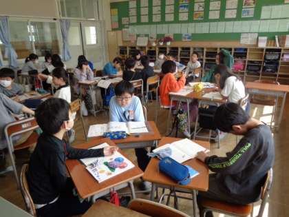4月19日(金)5年生 算数 公開日 2024/04/19 更新日 2024/04/19 5年生 算数科の学習で、5年生は直方体や立方体の体積についての学習をしています。子供たちはグループの友達と真剣に意見交換していました。