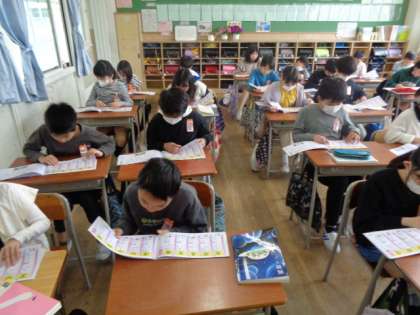 4月19日(金)5年生 国語 公開日 2024/04/19 更新日 2024/04/19 5年生 国語科の学習で、5年生は漢字を読む力を高めるために、漢字を音読しています。子供たちは集中して取り組んでいました。