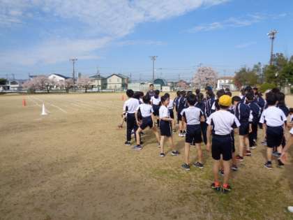 5年生は50メートル走を行いました。スタート時の走り方を意識して練習を行いました。