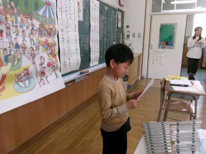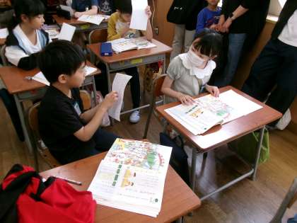 友達が作ったまいごのアナウンスを聞いて、絵の中から探す学習を行いました。大事なことを落とさずに、アナウンスの原稿を書いたり、聞いたりすることができました。