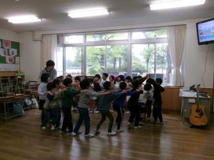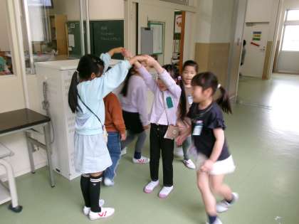 音楽の学習で、ロンドン橋の遊びを楽しみました。休み時間にも楽しむ様子が見られます。