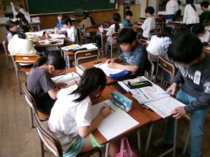 友達と協力して観察をしたり、真剣に話を聞いたりしています。