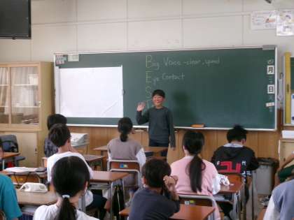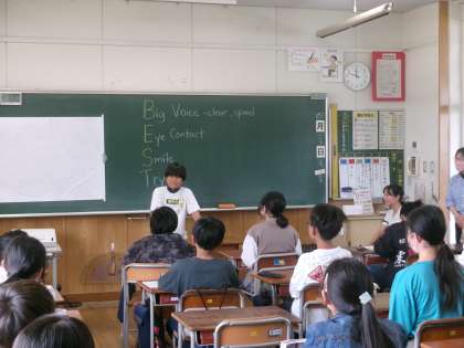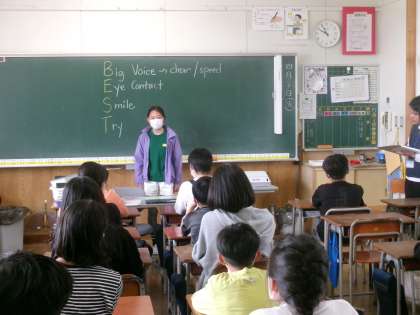 外国語では、自己紹介の仕方を学習しています。今日は、一人一人が自己紹介スピーチを発表しました。身振り手振りを使って、堂々と発表していました。