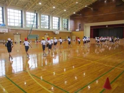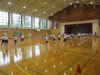 体育館で、20m走シャトルランの記録を測りました。最高で100回を越える人も。最後まで記録を伸ばそうと懸命の走る友達の姿に拍手もわき起こっていました。