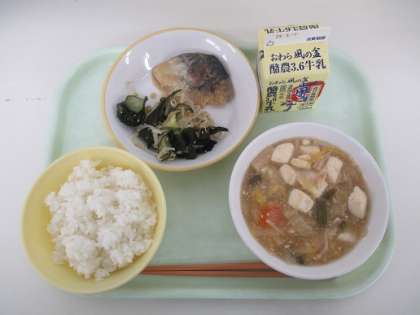 今日の献立は、ご飯 豆腐と野菜のうま煮 さばの味噌煮 ごま酢和え 牛乳 でした。