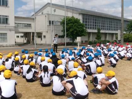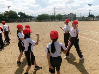 5年生との応援練習が始まりました。今日は、応援の流れを確認したり、一緒に振り付けを踊ったりする姿が見られました。写真は赤団の様子です。
