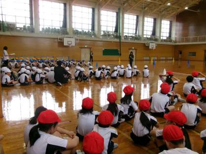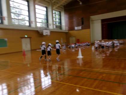 今日は運動会の中学年団体種目である大久保ハリケーンを、3・4年生合同で練習しました。全体で棒の持ち方を確認したり、はやくゴールする作戦を考えたりしました。