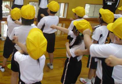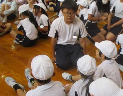 白団と黄団の様子です。上手に応援ができるよう、練習をしていきます。