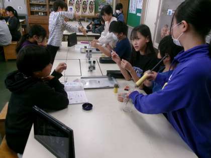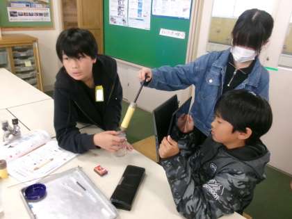 理科の学習では、「物の燃え方と空気」の学習をしています。今日は気体検知管を使って、物が燃えたあとの気体の変化を調べました。