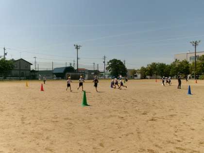 5月10日(金) 4年生 運動会に向けて 公開日 2024/05/11 更新日 2024/05/11 4年生 今日は3・4年生合同で2時間、団体競技の練習を行いました。いよいよ運動会本番が来週に迫る中、入退場の動きや競技の流れなど細かな部分まで確認しました。今日は晴れて暑い中、子供たちは最後まで集中して頑張っていました。
