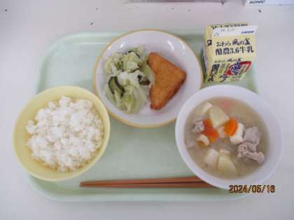 今日の献立は、ご飯  豚汁  はんぺんフライ  きざみ和え  牛乳  でした、