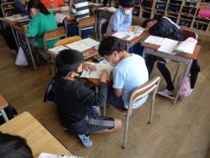 算数科の学習では、自分の考えを言葉にして伝えることを大切にしています。子供たちは聞いている人に分かってもらえるよう言葉を選んで説明していました。