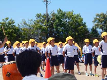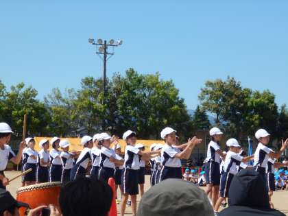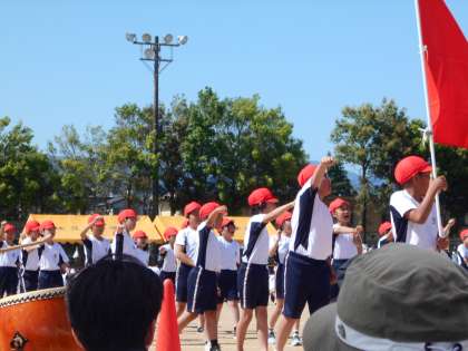 5年生の運動会の応援合戦の様子です。大きな声が聞こえていました。