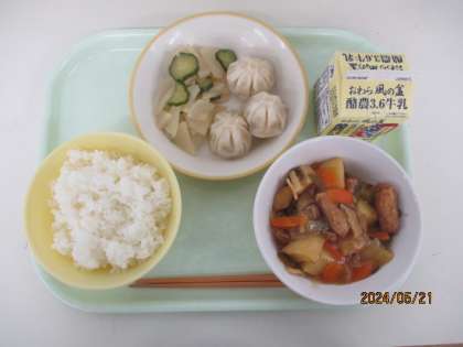 今日の献立は、ご飯 酢豚 えびパオツ かふう和え 牛乳 でした。