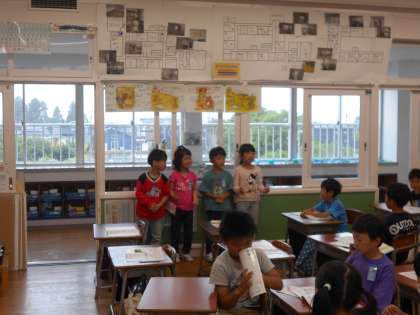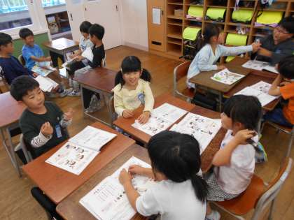 「じゃんけんぽん」の音楽に合わせてグループごとに見せ合いました。