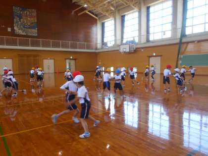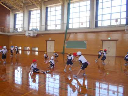 おにあそびのしっぽとりをしました。 初めは、2人ペアでしっぽを取り合いました。