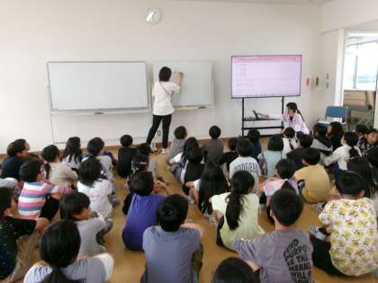 4年生が大久保小学校代表として出演する2学期の音楽会に向けて、みんなで歌う曲を考えました。候補となる3曲を聴き、みんなで心を一つにして歌うイメージを膨らませました。