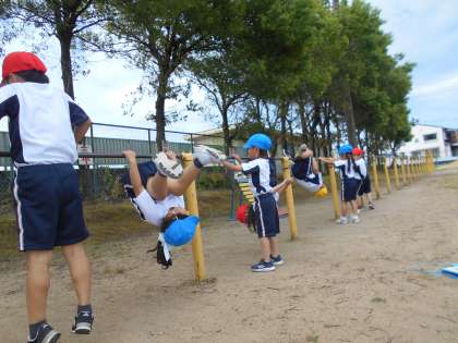 6月10日(月)1年生 体育 公開日 2024/06/10 更新日 2024/06/10 1年生 鉄棒と走る運動に分かれて行いました。 鉄棒では、プリントに書かれた技を見ながら全部できるようにチャレンジしていました。