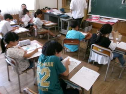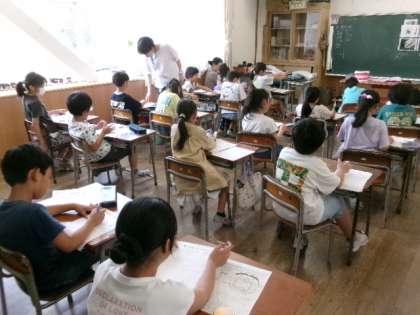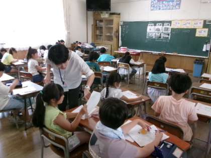 お家で行ったカラーテストをもとに、養護教諭の鶴巻先生に歯の大切さや虫歯の防ぎ方を教えてもらいました。