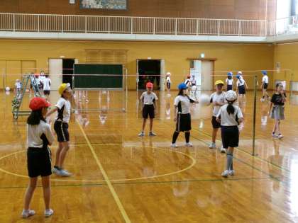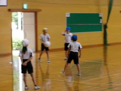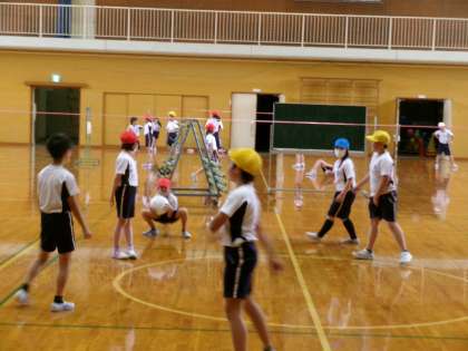 週明けから暑い日となりましたが、元気に体を動かしていました。体育のキャッチバレーボールでは、チームでパスをつなぐことに挑戦しています。チーム全員でパスを回す「つながりポイント」を目指して頑張っています。
