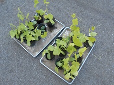 葉が増え、くきやつるがぐんぐん伸びてきたので、ヘチマの植え替えをしました。