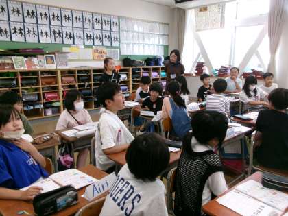 今日は、自分の好きな曜日を伝える練習をしながら、ビンゴゲームをしました。みんな興味津々で友達の好きな曜日を聞いていました。また、今日は外国語の先生との最後の授業だったので、みんなで寄せ書きを渡しました。