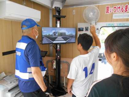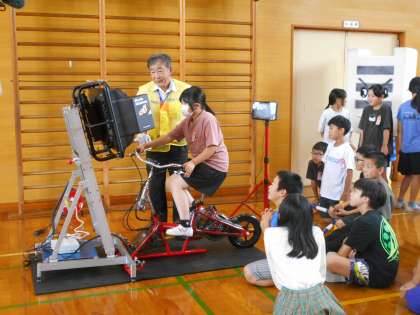先日の5年生の交通安全教室の様子です。安全教育車を使用した歩行者疑似シュミレータ体験や疑似自転車を使用したシュミレータ体験、自転車のルールに関するビデオ鑑賞などを行いました。