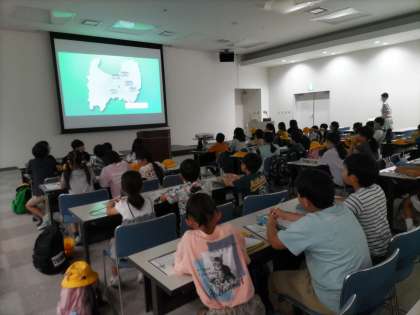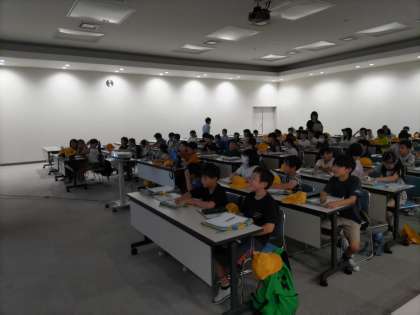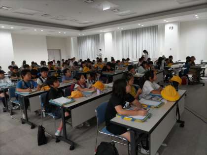 クリーンセンターに到着しました。施設の様子を説明したビデオを視聴しています。