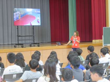 先月の27日(木)にアランマーレ富山(ハンドボール)に所属している横嶋彩選手を迎えて、特別講演をしていただきました。「続ける」ことをテーマに、夢や目標を叶えるためのステップや、自身の経験をたくさん教えていただきました。大きな怪我を乗り越えて、日本代表への復帰や東京オリンピック出場の語りを聞いた子供たちは真剣な表情でした。