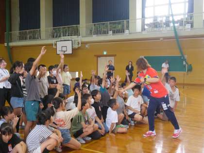後半は実技体験も行い、ハンドボールに楽しく取り組むことができました。中には、競技自体にも興味をもった子供もいました。