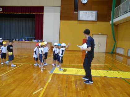 おにごっこをしてから、立ち幅跳びとラダーに分かれて活動しました。