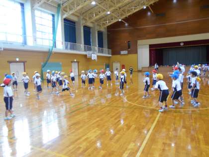 その後の休み時間も体育館でドッジボールをして、体をたくさん動かしていました。