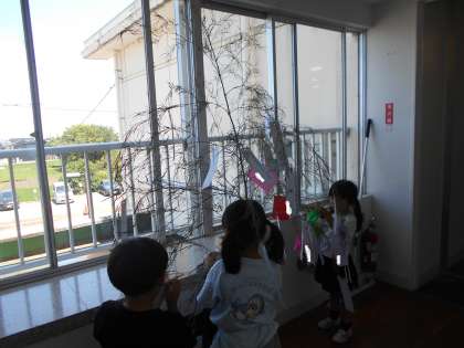 七夕に向けて、飾りを作ったり願い事を書いたりしました。