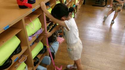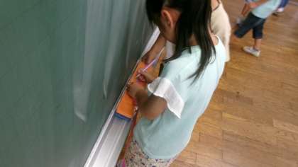 今日は、紙テープを使って様々なものの長さを測りました。教師机の長さや黒板消しの長さなどをペアで協力しながら、長さを紙テープに写していました。