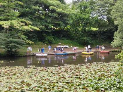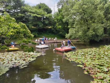 筏遊びは、慎重に。声を掛け合いながら漕ぎました。