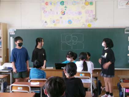 学活では、係からの発表を行いました。お笑い係やお楽しみ係、クイズ係など工夫を凝らした発表が見られました。