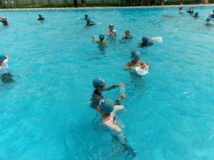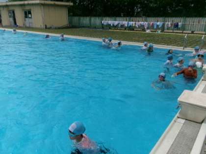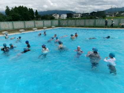 子供たちは、着衣泳で服を着たまま入ったときの動きにくさを体験しました。