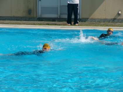 1学期最後の体育は、泳力測定を行いました。自己ベスト更新を目指して、一生懸命に泳ぎ切りました。